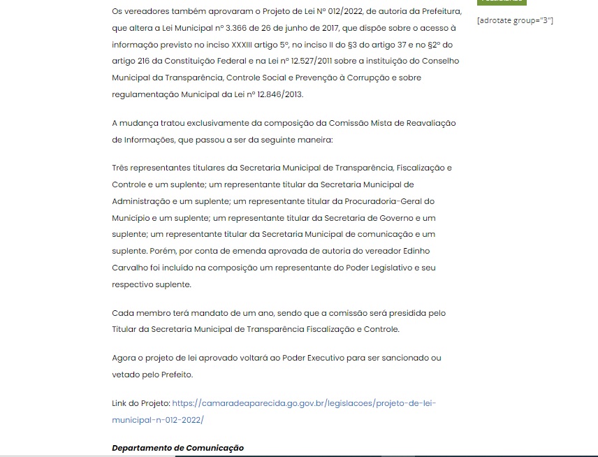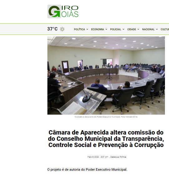Câmara de Aparecida altera comissão do Conselho Municipal da Transparência, Controle Social e Prevenção à Corrupção