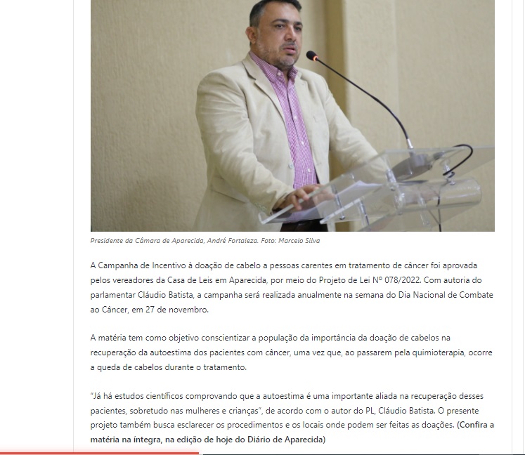 Câmara de Aparecida aprova lei de Incentivo à doação de cabelo a pessoas carentes em tratamento de câncer