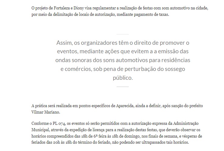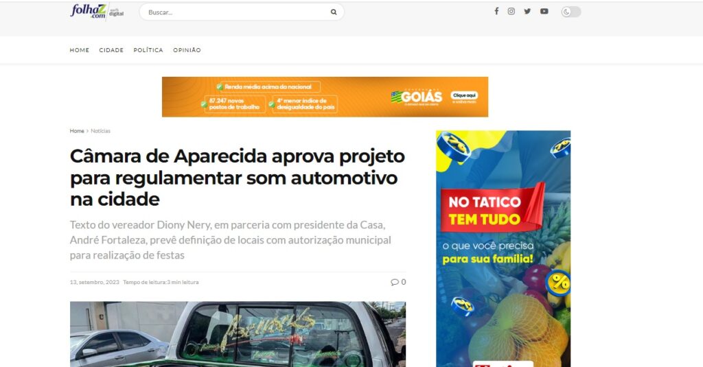 Câmara de Aparecida aprova projeto para regulamentar som automotivo na cidade