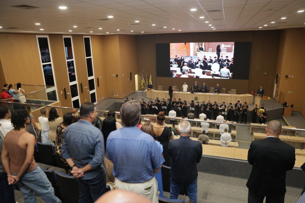 Após os discursos, foi iniciada a entrega dos títulos, que simbolizam o reconhecimento ao trabalho e à dedicação desses militares na promoção da segurança e do bem-estar da população aparecidense.