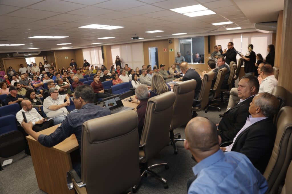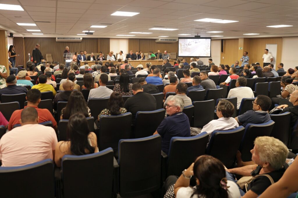Câmara Municipal de Aparecida de Goiânia, 05/05/2025. A Câmara Municipal de Aparecida de Goiânia realizou, na manhã desta segunda-feira, 5, uma reunião pública no auditório Sebastião Viana para debater a atualização da legislação que regulamenta as feiras livres e especiais do município. O encontro foi proposto pela vereadora Camila Rosa, com o apoio do presidente da Casa, vereador Gilsão Meu Povo, ambos reconhecidos por sua atuação em defesa da categoria.