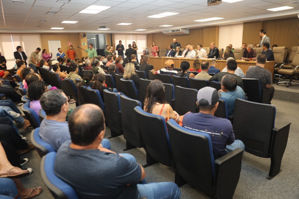 Em seguida, todos os vereadores presentes assinaram o documento, demonstrando o apoio irrestrito do Poder Legislativo à causa.