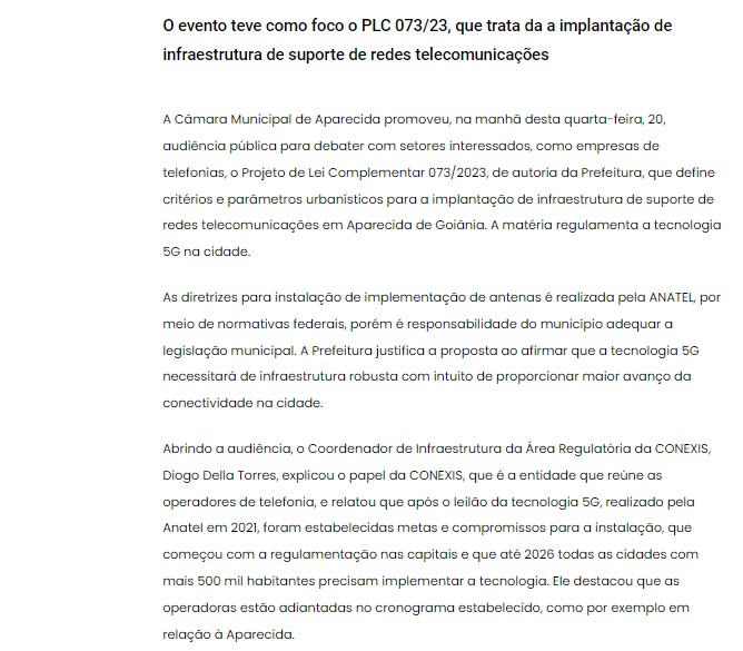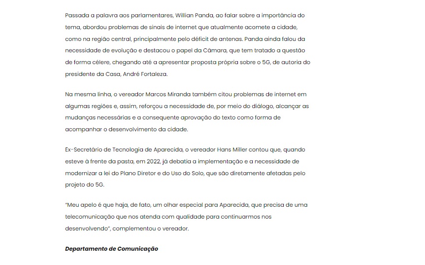 Câmara de Aparecida debate Implementação da tecnologia 5G