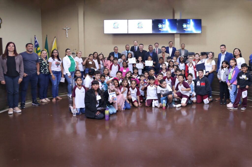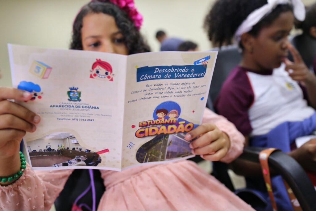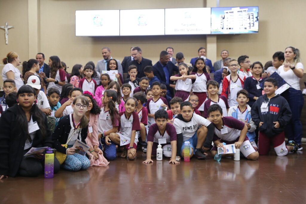Câmara Municipal de Aparecida de Goiânia, 14/06/2023. Na manhã desta quarta-feira, 14, a Câmara Municipal de Aparecida recebeu a animada visita dos alunos do quarto ano do Colégio Municipal “O pequenino”, para participarem de uma Sessão Ordinária especial. A iniciativa, integrante do projeto “Estudante Cidadão”, tem como objetivo proporcionar aos estudantes a oportunidade de conhecer mais de perto o funcionamento do Legislativo Municipal e estimular seu engajamento cívico.
