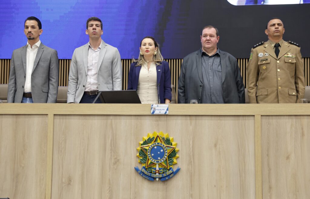 A mesa diretiva foi composta pela vereadora Camila Rosa, pelo chefe de gabinete da Prefeitura, Hans Miller, pelo vereador Tatá Teixeira e pelos homenageados da noite.