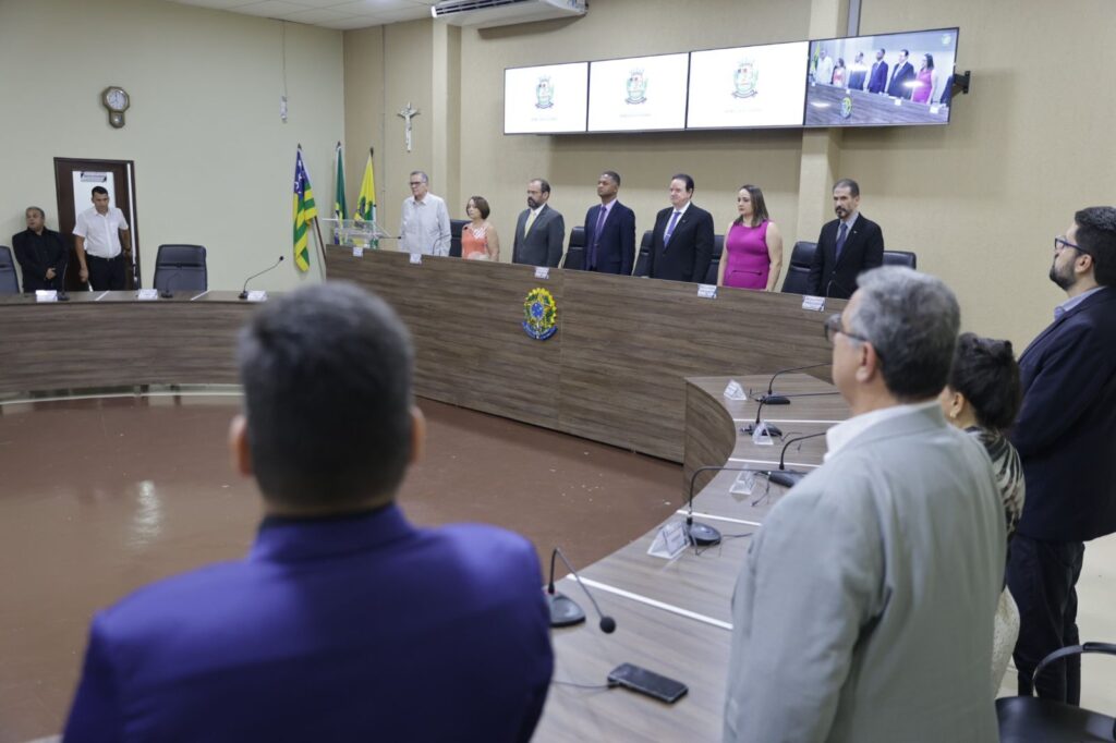Câmara Municipal de Aparecida de Goiânia, 29/09/2023. Durante sessão solene, na noite de ontem, 28, foi celebrado o Dia do Administrador, na Câmara Municipal de Aparecida. A proposta é de autoria do presidente, vereador André Fortaleza, em parceria com o Conselho Regional de Administração (CRA-GO), com o objetivo de homenagear a profissão.