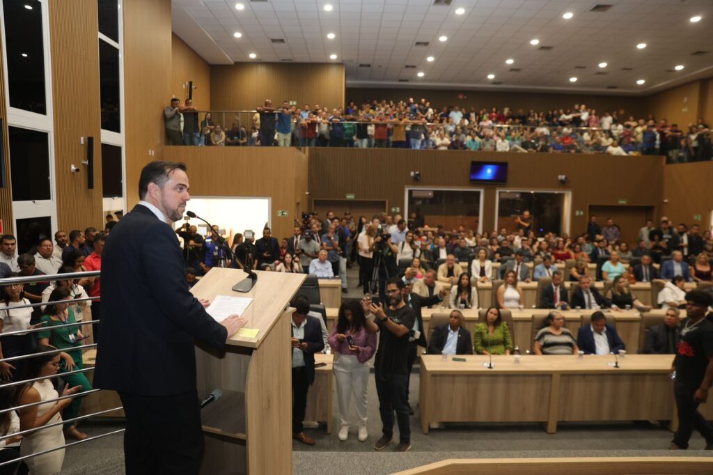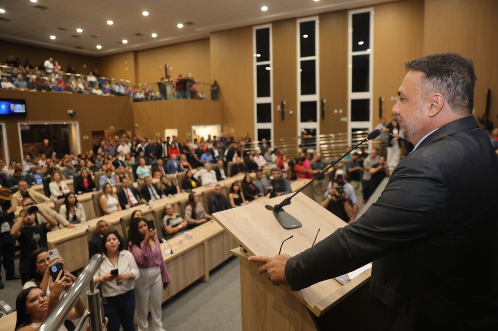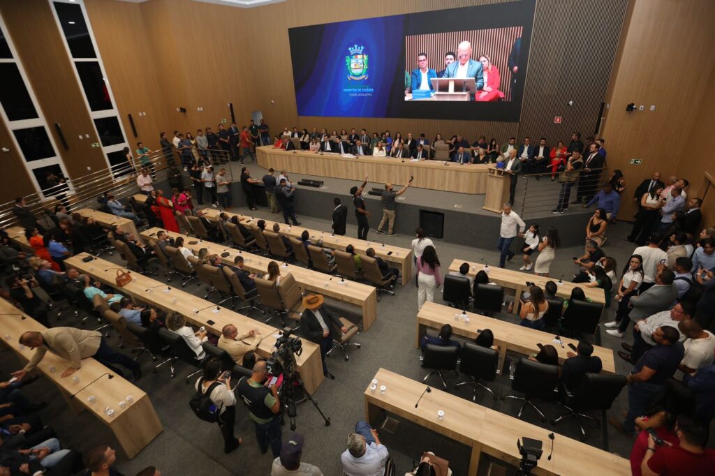 Câmara Municipal de Aparecida de Goiânia, 25/06/2024. Na noite de ontem ocorreu a inauguração da nova sede da Câmara de Aparecida, momento almejado há décadas, que atravessou diversas administrações. A construção, que desde a retomada pela atual gestão custou aproximadamente 22 milhões de reais, que foram