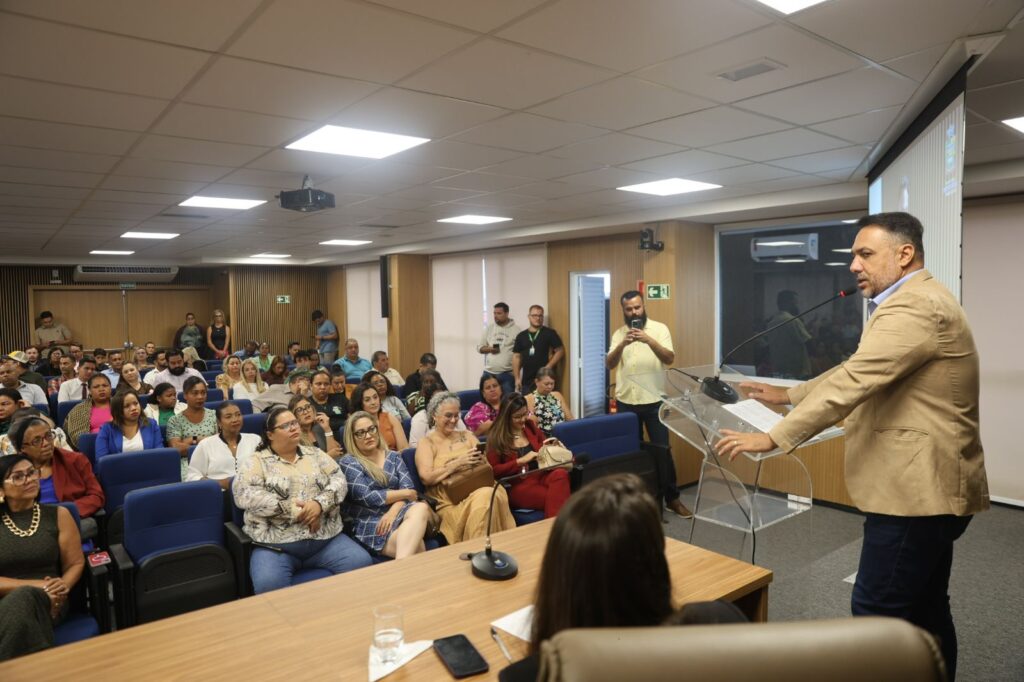 Ao final de seu discurso, o presidente André oficializou a nomeação da vereadora Camila como a primeira Procuradora Especial da Mulher do Legislativo Aparecidense.