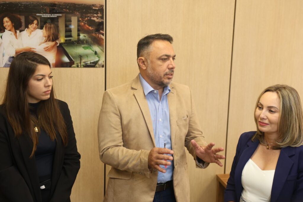 Câmara Municipal de Aparecida de Goiânia, 27/12/2024. Nesta sexta-feira 27, o Presidente da Câmara de Aparecida, André Fortaleza, juntamente da vereadora Camila Rosa, apresentaram a sala onde, a partir de Janeiro de 2025, serão desenvolvidos os trabalhos da Procuradoria Especial da Mulher da Câmara.