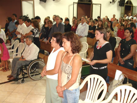 Homenagens e muita emoção marcaram a missa de sétimo dia da morte do vereador Geraldo Padeiro, realizada na quarta-feira,27, na paróquia Santa Luzia – Setor Santa Luzia. Parentes e amigos compareceram a cerimônia. Estiveram presentes, o prefeito José Macedo, o presidente da Câmara Municipal, João Antônio Borges, os deputados estaduais Valdir Bastos, Ozair José e os amigos vereadores. A missa foi celebrada pelo padre João Batista. Durante o sermão ele lembrou que apesar da dor a morte não representa o fim da vida. Nós somos emprestados para este mundo e quando passamos para o outro lado, estamos na verdade renascendo para a vida. Jesus disse que a casa do pai existe várias moradas e Geraldo Magela está numa dessas moradas, ressaltou. O padre lembrou ainda o quanto o vereador ajudou as pessoas por meio da política. Ele foi uma pessoa designada para servir o próximo, acrescentou. O término da missa foi reservado para homenagens. Um telão foi montado no altar com imagens da vida pública do vereador. A irmã dele, a empresária Maria Dalva Cunha agradeceu ao paio dos amigos no momento de dor da família. Eu não conhecia o mundo tão simples que meu irmão vivia, mas agora percebo o quando temos amigos numa comunidade tão bonita. Agradeço todos aqueles pelo carinho e apoio que nos deram.