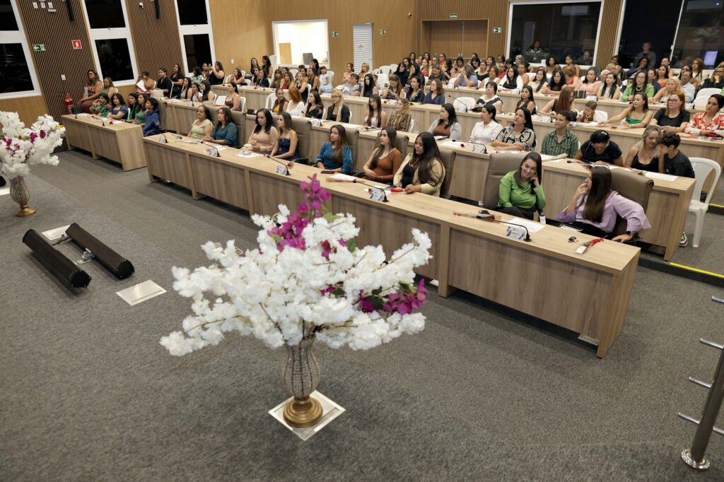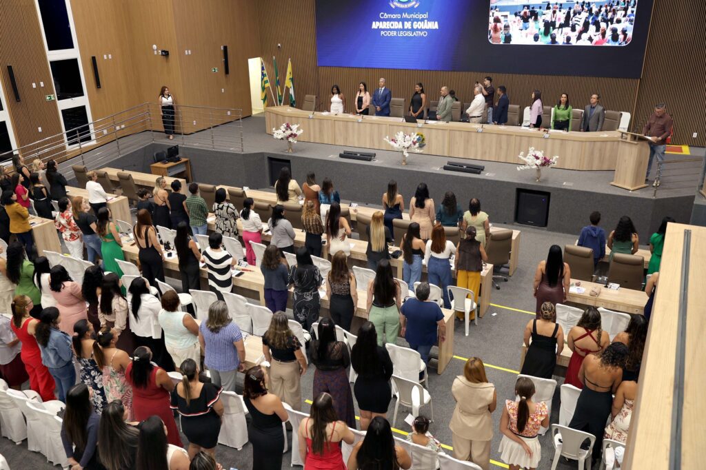 Câmara Municipal de Aparecida de Goiânia, 09/03/2026. Em mais um evento em celebração ao Dia Internacional da Mulher, a Câmara de Aparecida de Goiânia promoveu, na noite desta segunda-feira, 09, por iniciativa do vereador Neto Gomes, uma solenidade para homenagear mais de 300 mulheres aparecidenses.