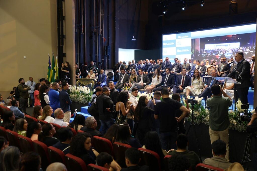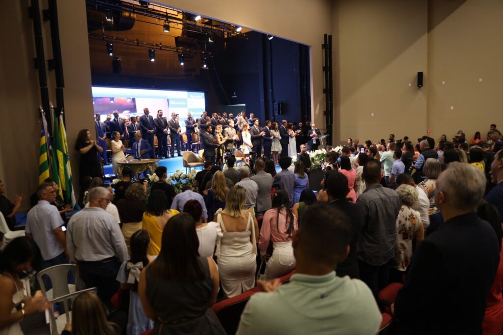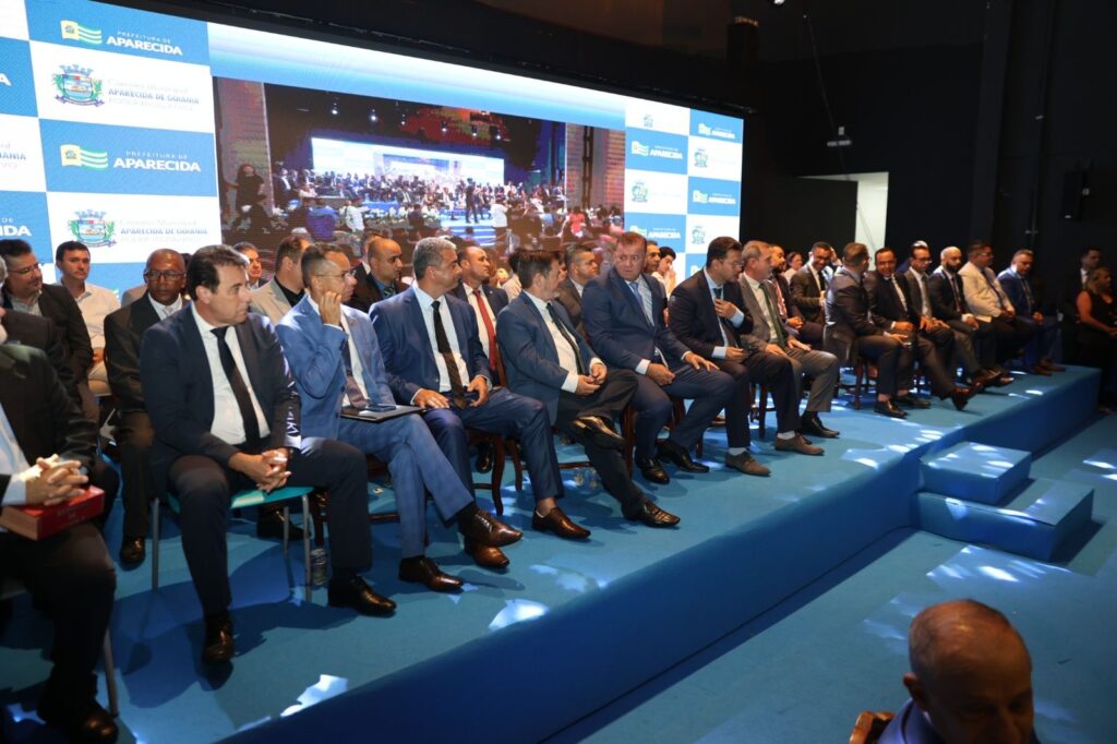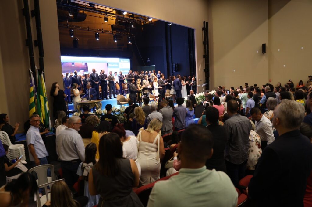 Câmara Municipal de Aparecida de Goiânia, 01/01/2025. Em solenidade realizada na manhã desta quarta-feira, 1, no Anfiteatro Municipal, a Câmara Municipal de Aparecida de Goiânia empossou os 25 vereadores eleitos, o prefeito Leandro Vilela (MDB) e seu vice, João Campos (REP).