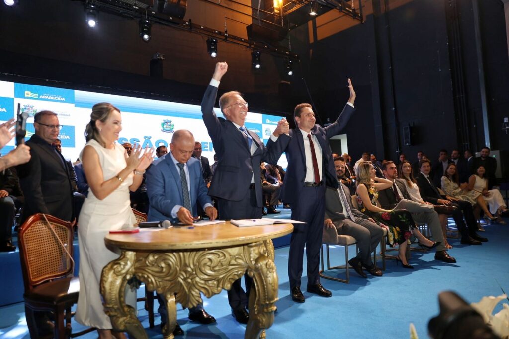 Dando continuidade aos pronunciamentos, o ex-prefeito Gustavo Mendanha saudou todos os que contribuíram para a história de Aparecida. Ele destacou, em especial, o saudoso ex-prefeito Maguito Vilela, reconhecendo-o como o maior líder que a cidade já teve e enaltecendo seu legado de cuidado e atenção às pessoas mais humildes. No entanto, não poupou críticas ao agora também ex-prefeito, Vilmar Mariano, que, segundo Gustavo, entregará ao novo prefeito uma Prefeitura em situação crítica.