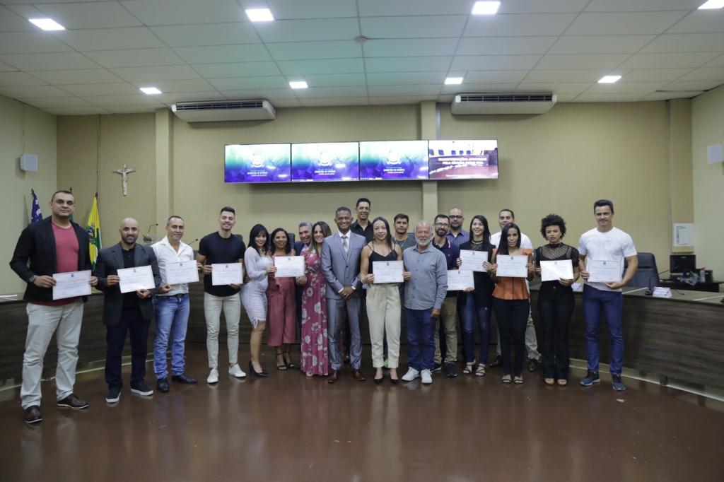 Câmara Municipal de Aparecida de Goiânia, 19/10/2022. Durante sessão solene na última terça-feira, 18, os profissionais de Educação Física foram homenageados na Casa Legislativa. Com autoria do vereador Getúlio Andrade, a solenidade contou também com a participação do vereador Marcelo da Saúde, do secretário de esportes de Aparecida, Gerfeson Aragão, e demais profissionais da área.