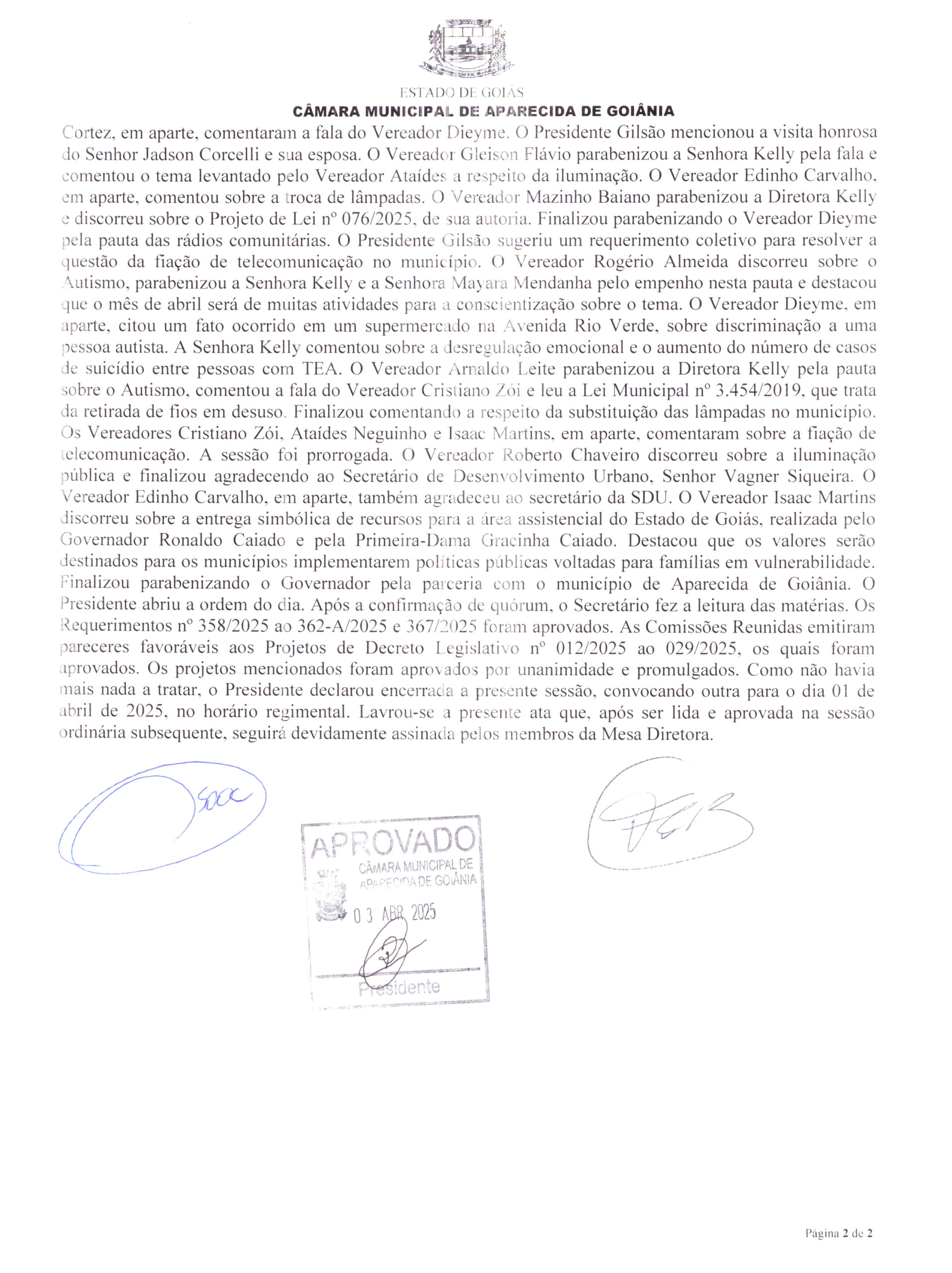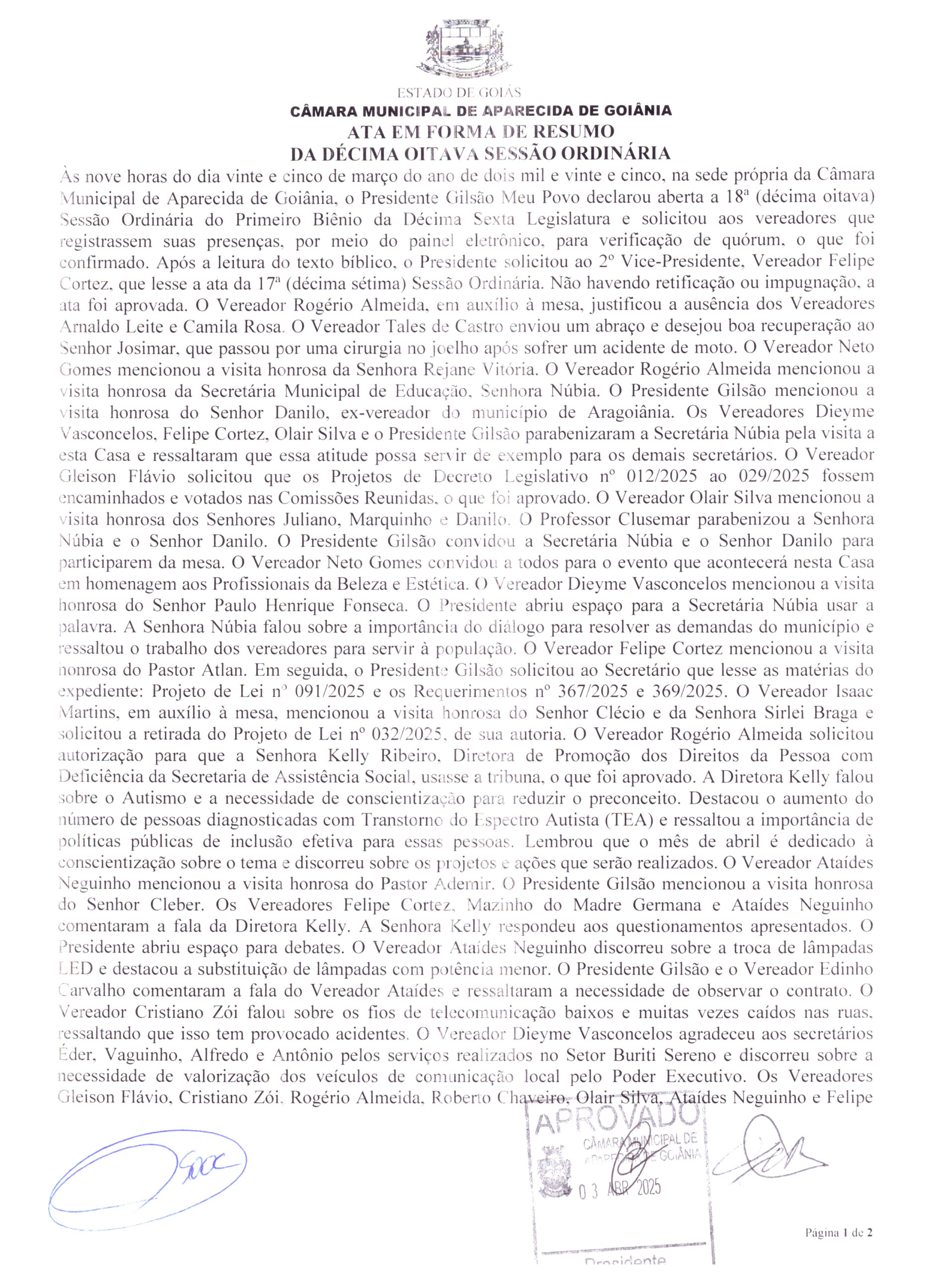 Ata da Décima Oitava Sessão Ordinária de 2025