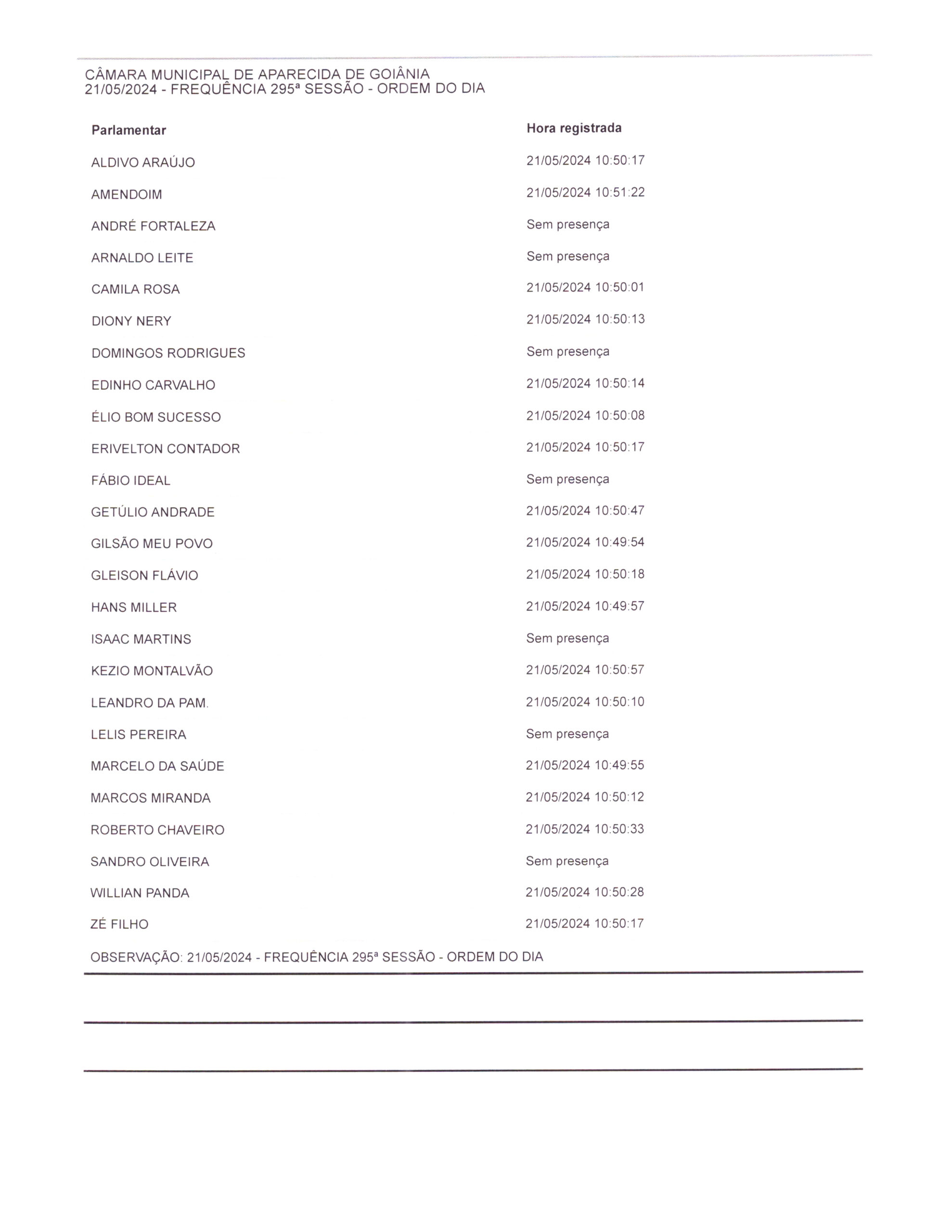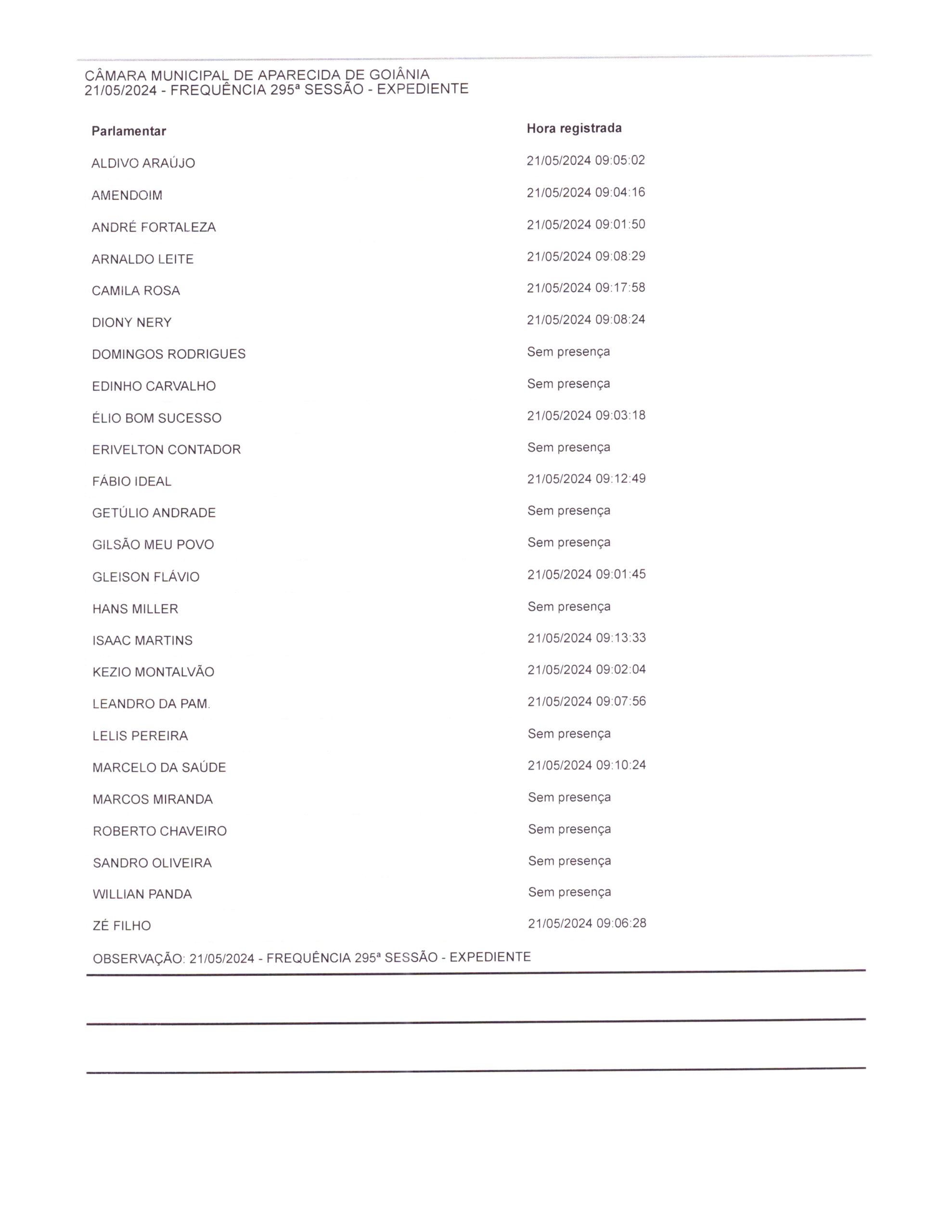 Ata em forma de resumo e frequência: Ata da Ducentésima Nonagésima Quinta Sessão Ordinária
