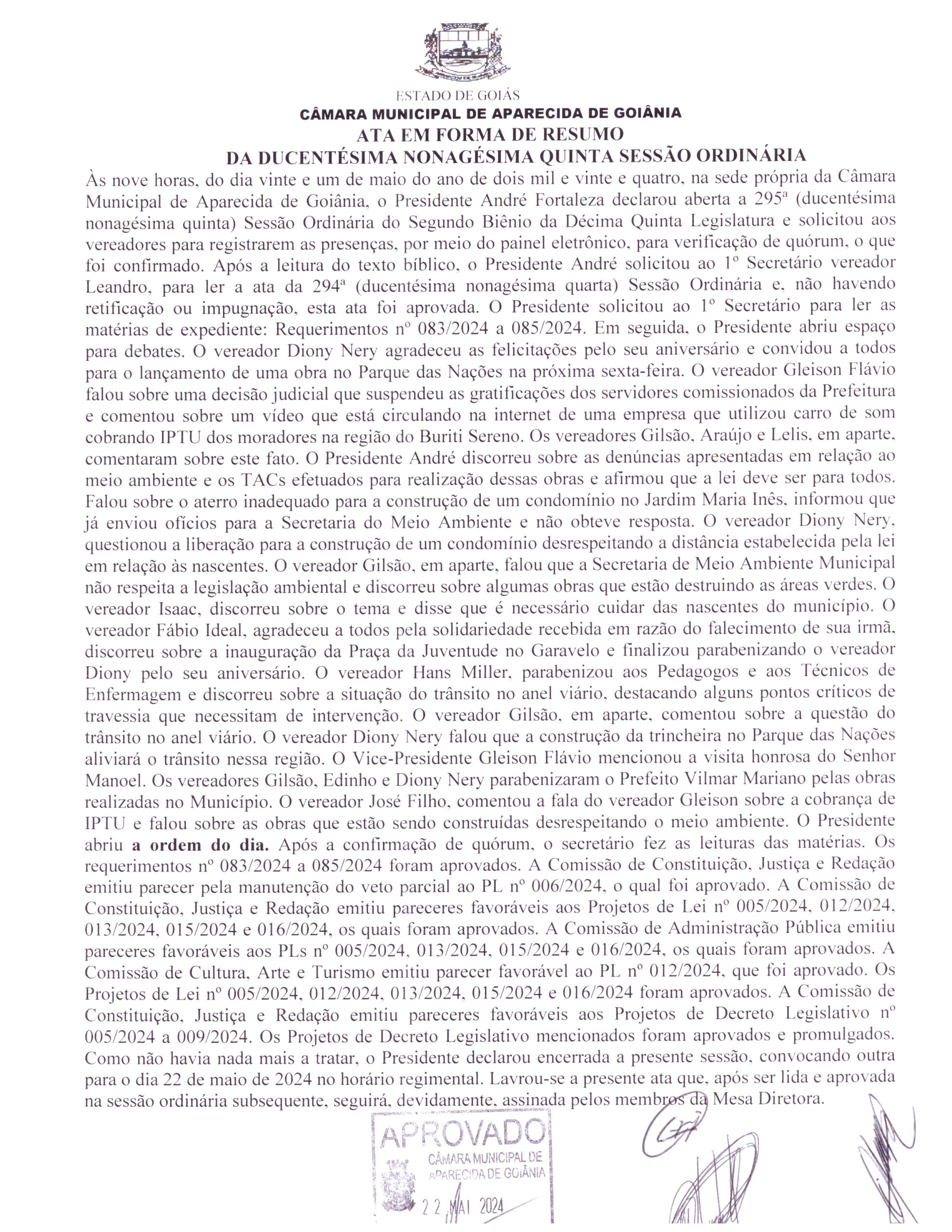 Ata da Ducentésima Nonagésima Quinta Sessão Ordinária