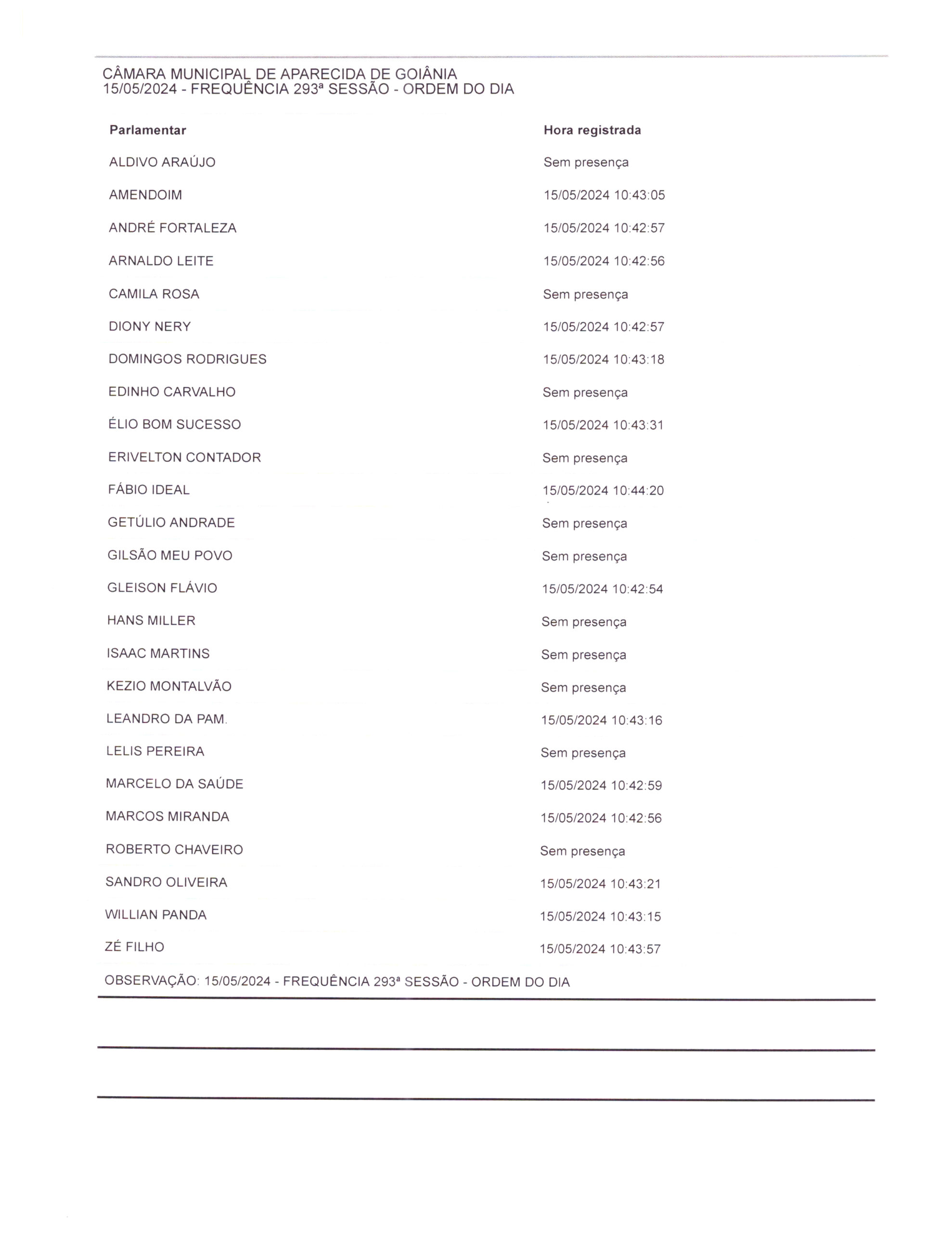 Ata em forma de resumo e frequência: Ata da Ducentésima Nonagésima Terceira Sessão Ordinária