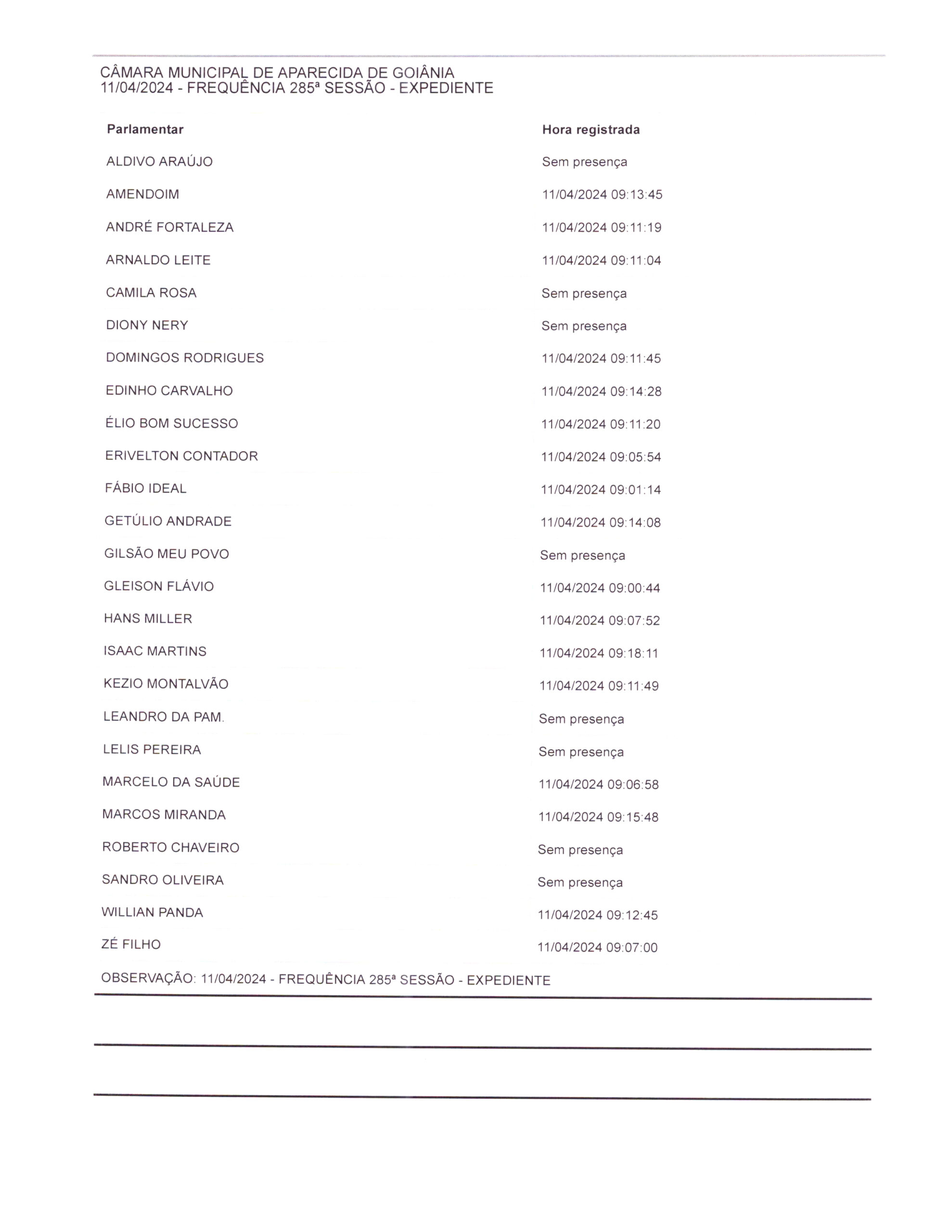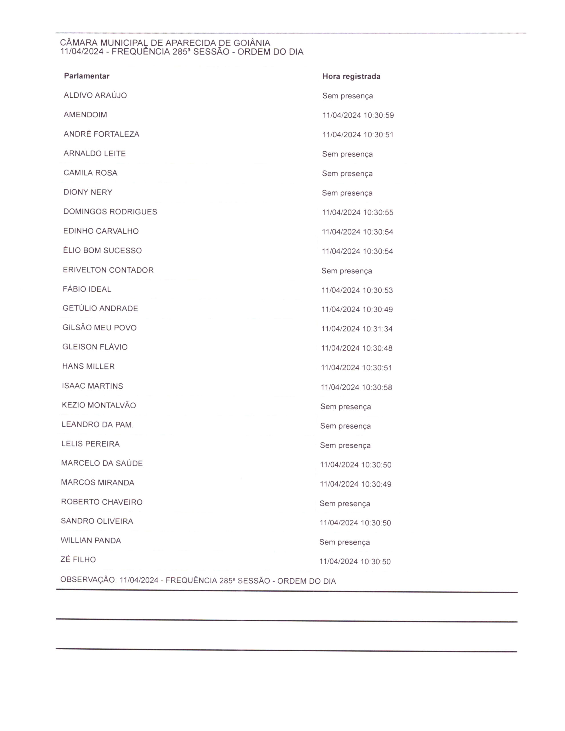 Ata em forma de resumo e frequência: Ata da Ducentésima Octogésima Quinta Sessão Ordinária