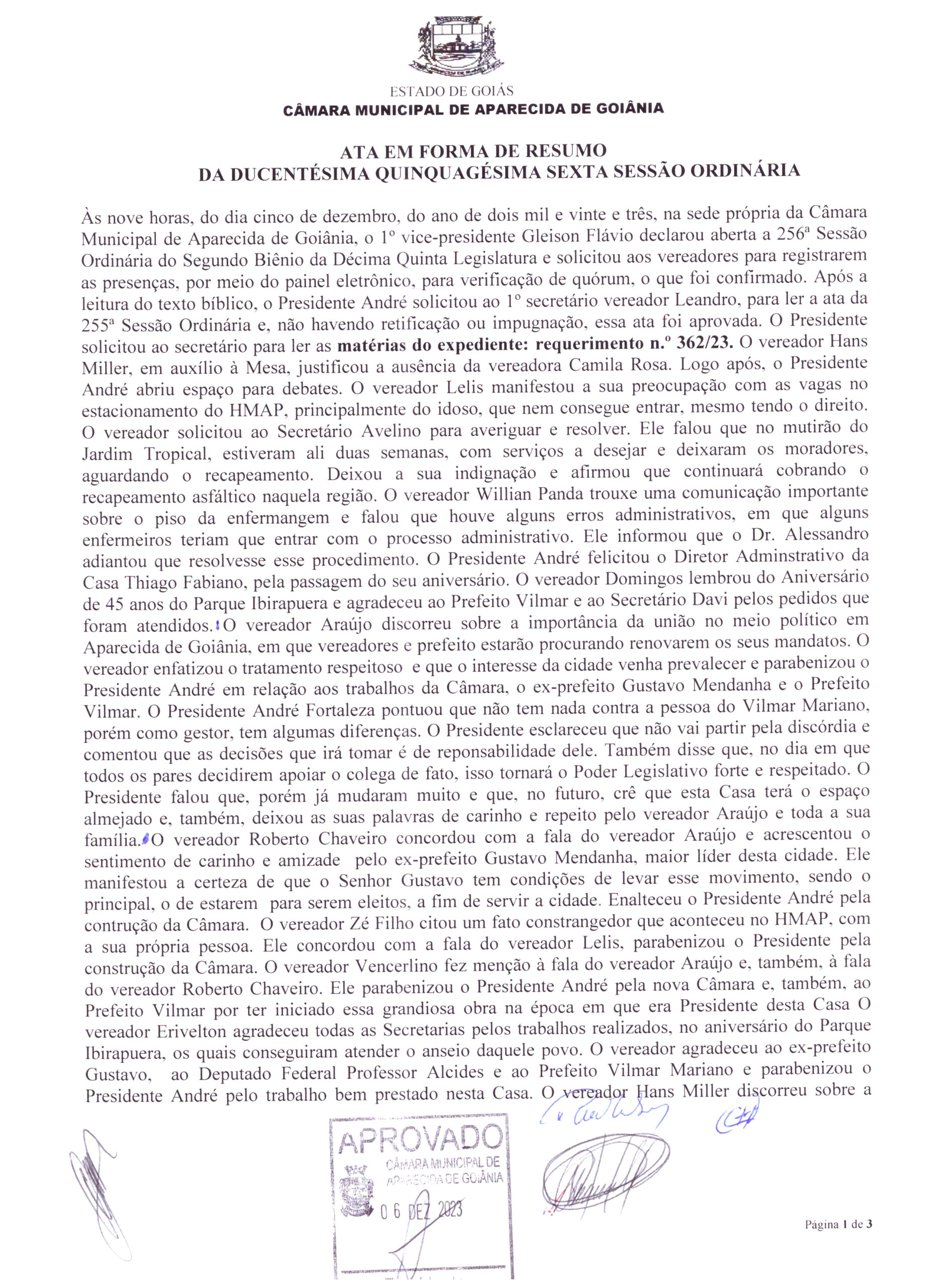 Ata da Ducentésima Quinquagésima Sexta Sessão Ordinária
