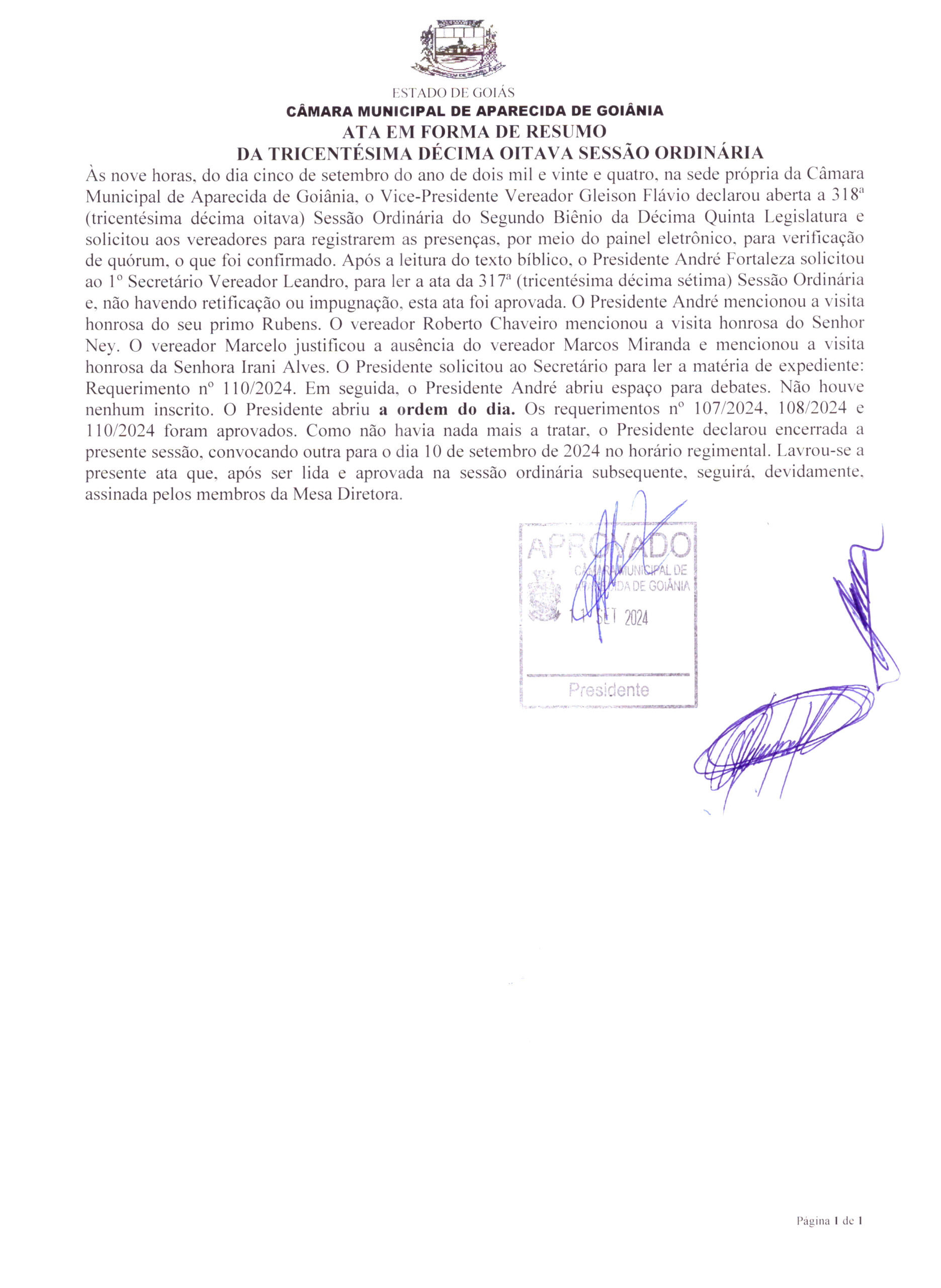 Ata da Trecentésima Décima Oitava Sessão Ordinária