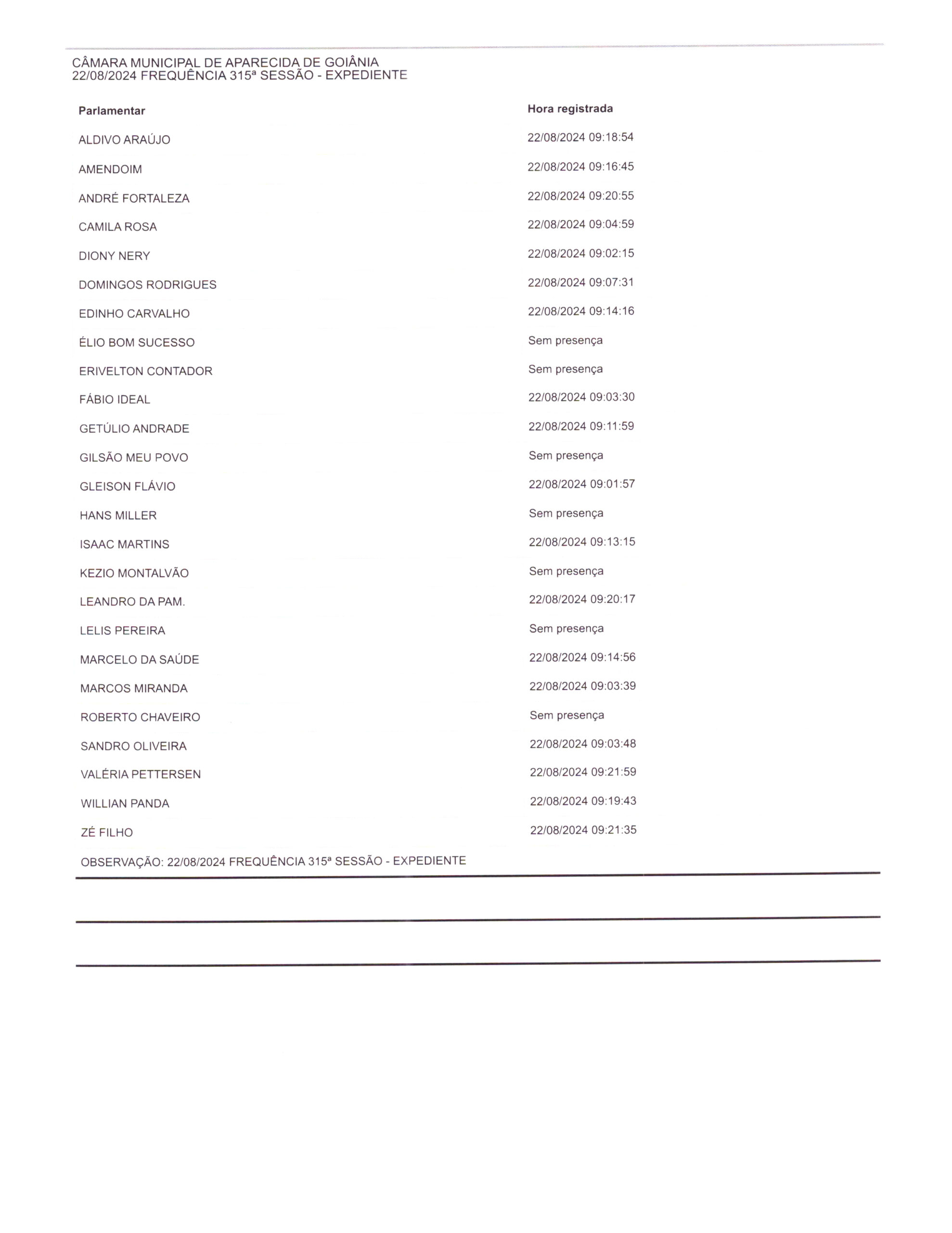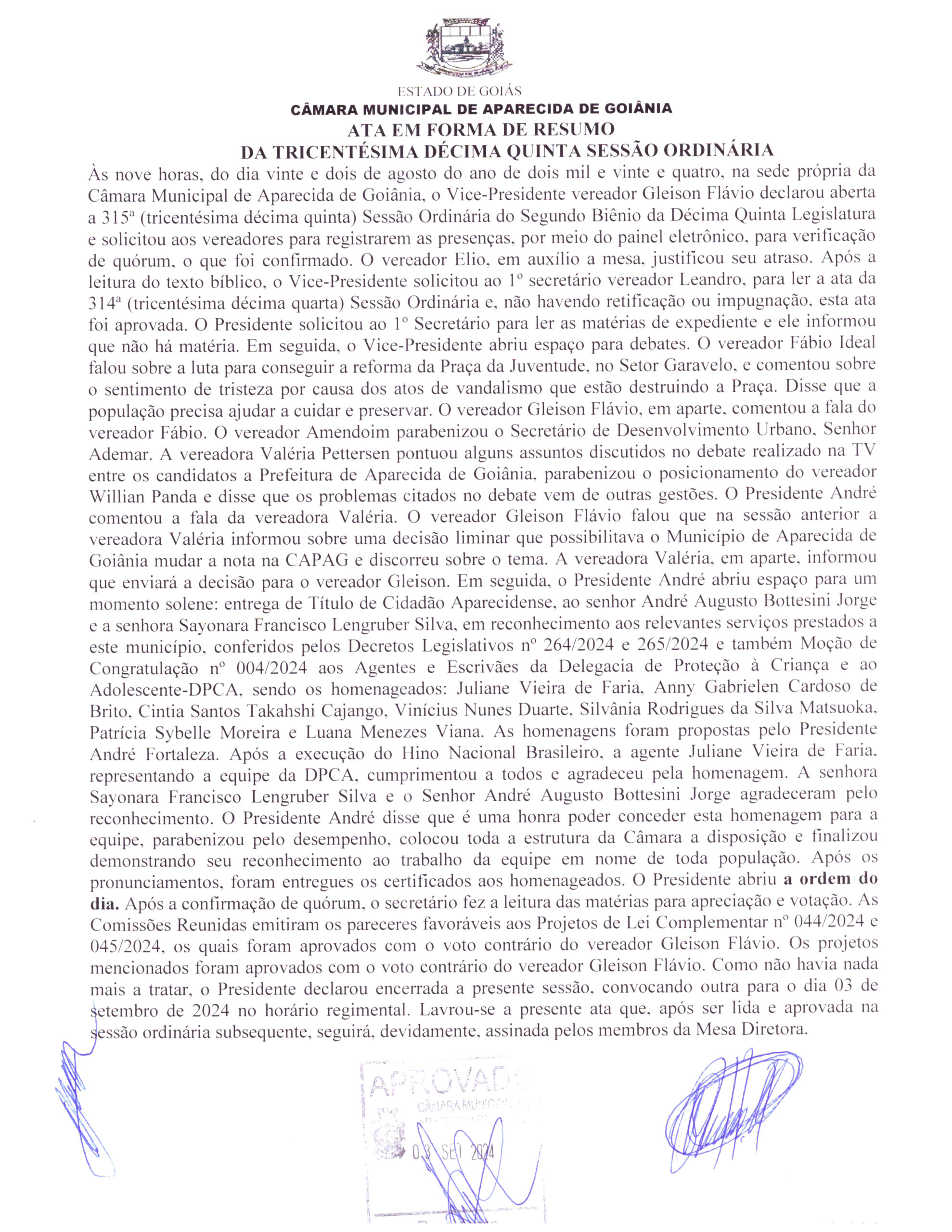 Ata da Trecentésima Décima Quinta Sessão Ordinária