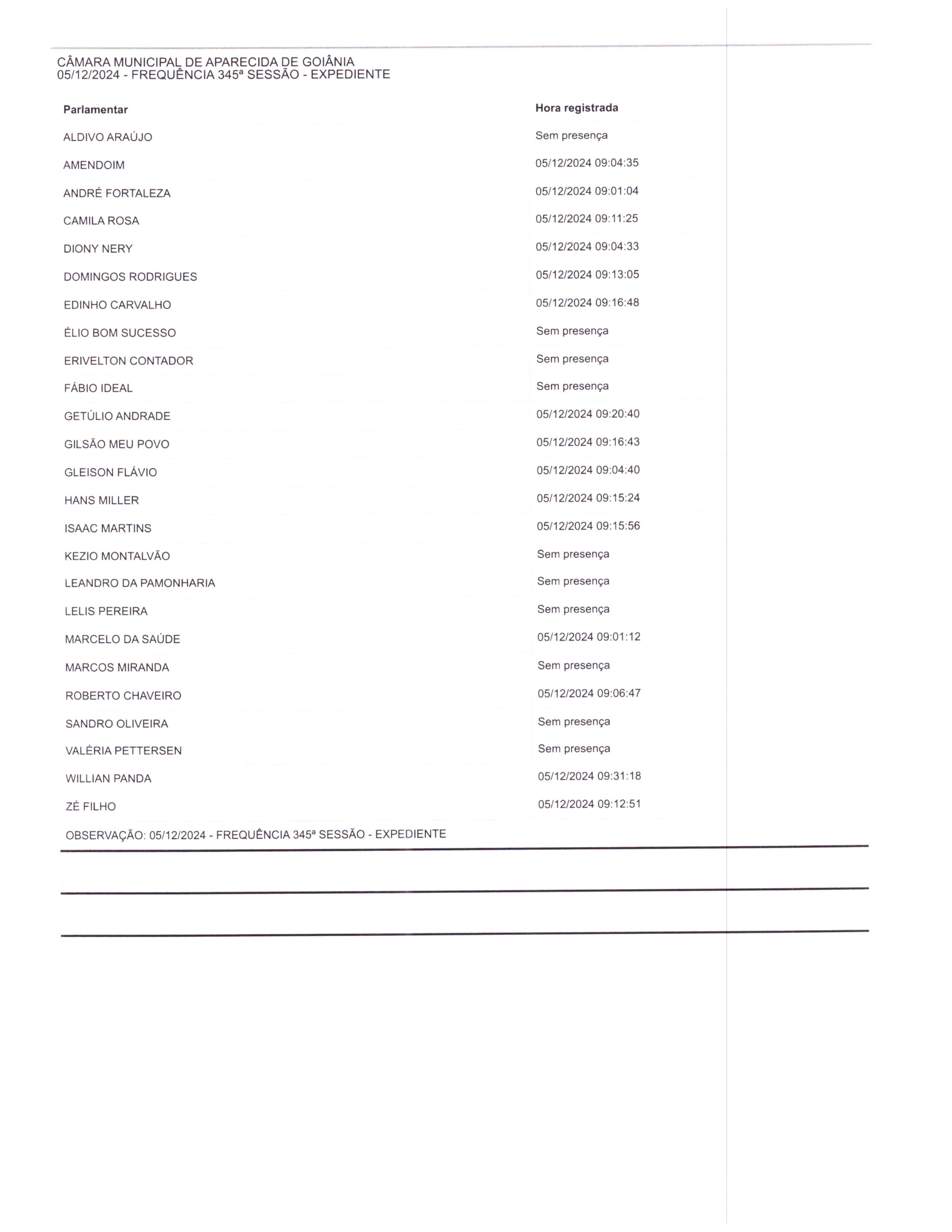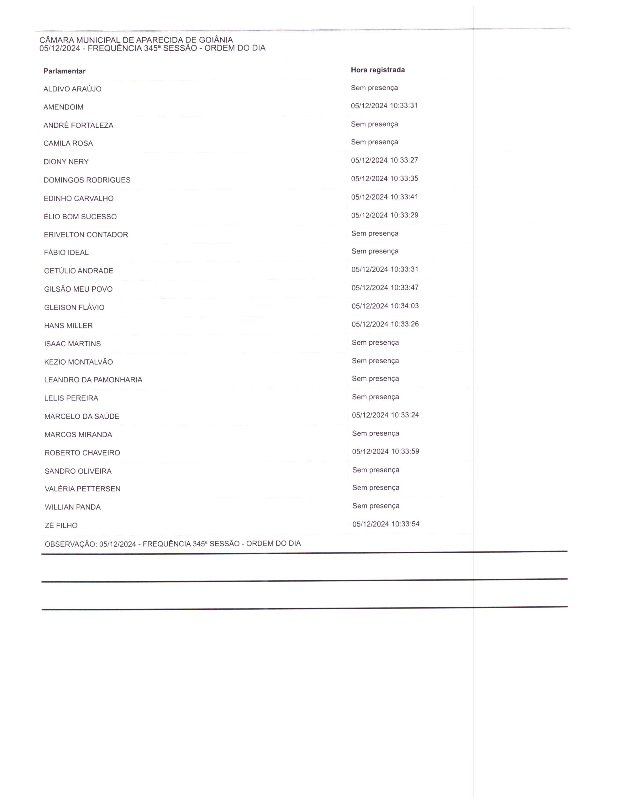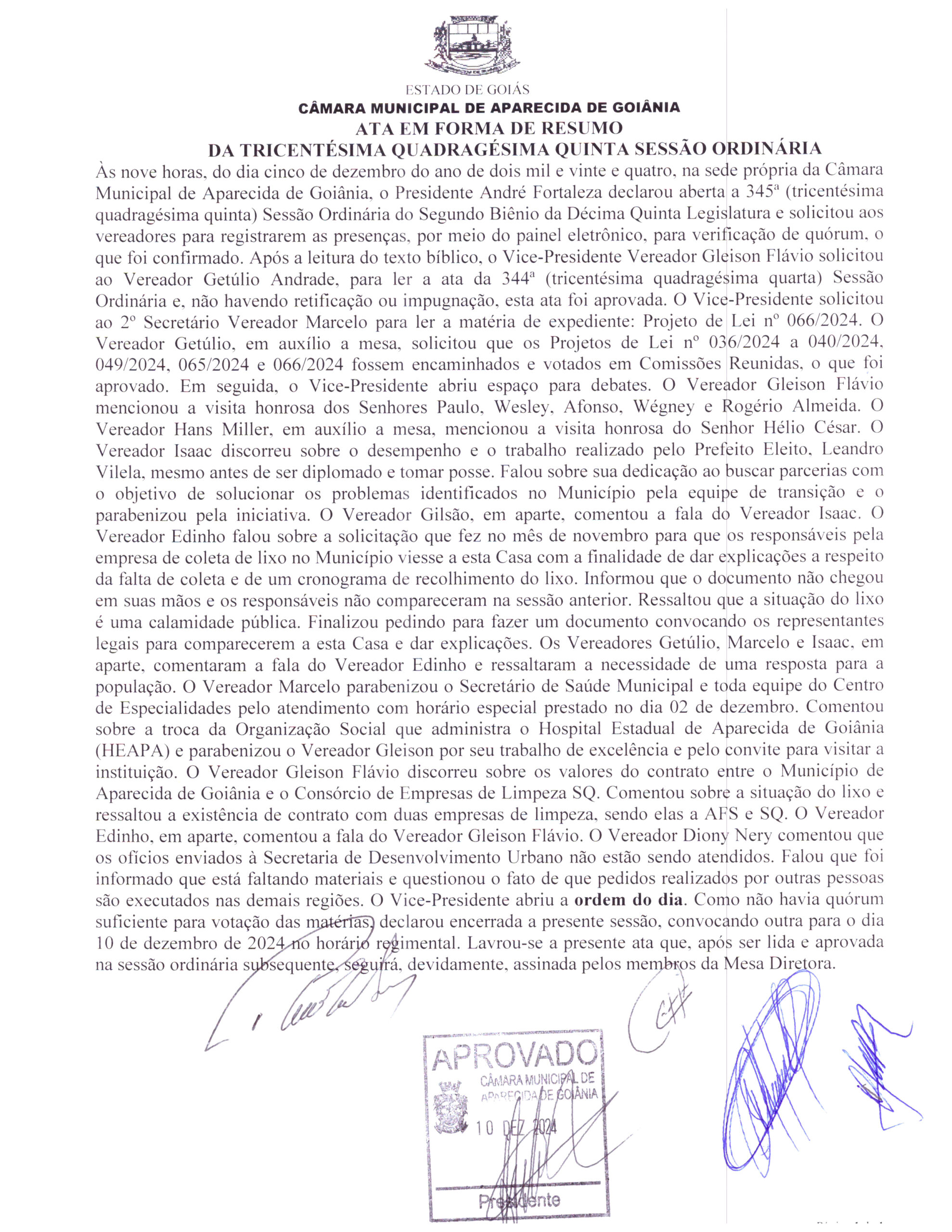 Ata da Trecentésima Quadragésima Quinta Sessão Ordinária