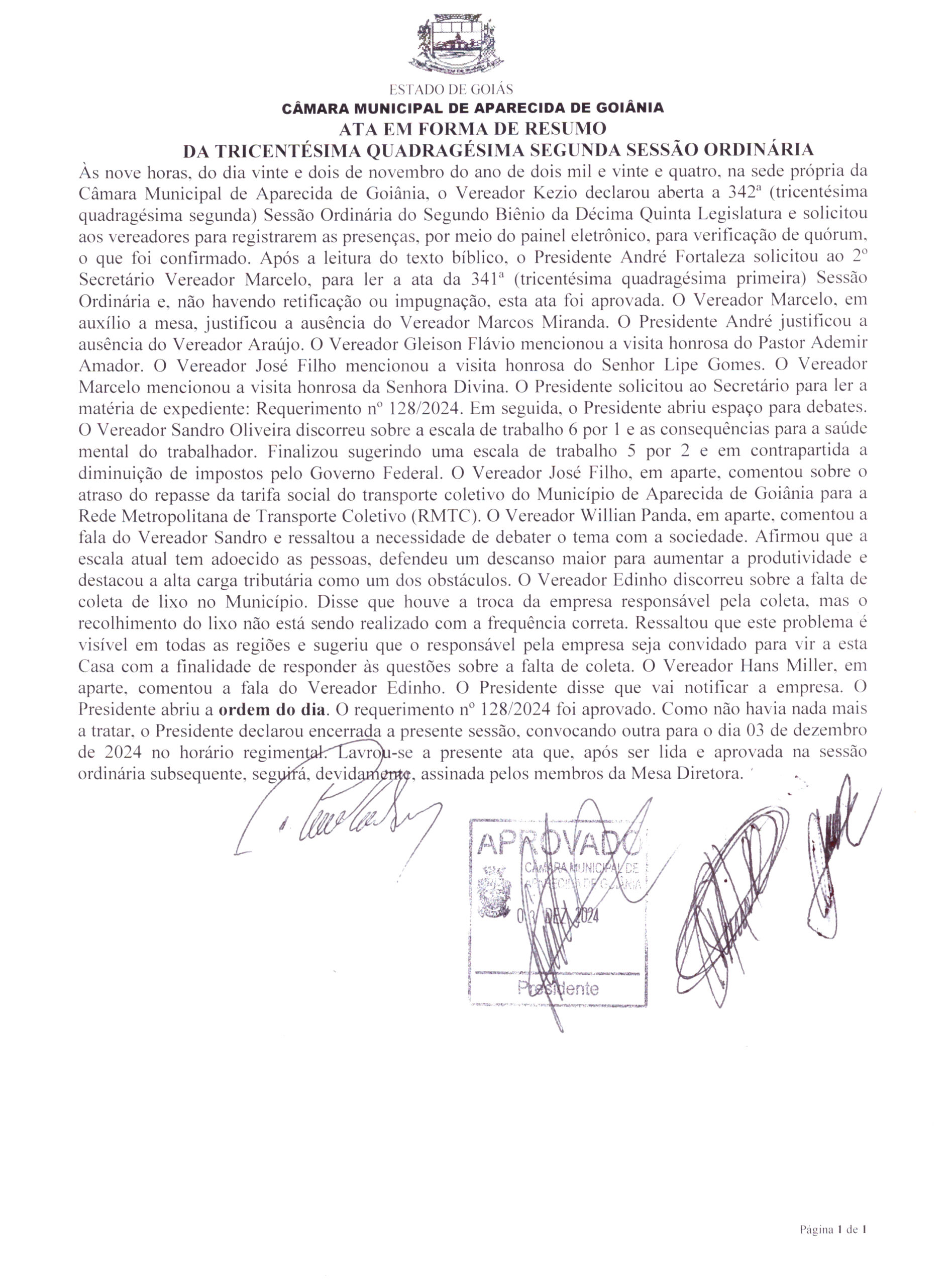 Ata da Trecentésima Quadragésima Segunda Sessão Ordinária