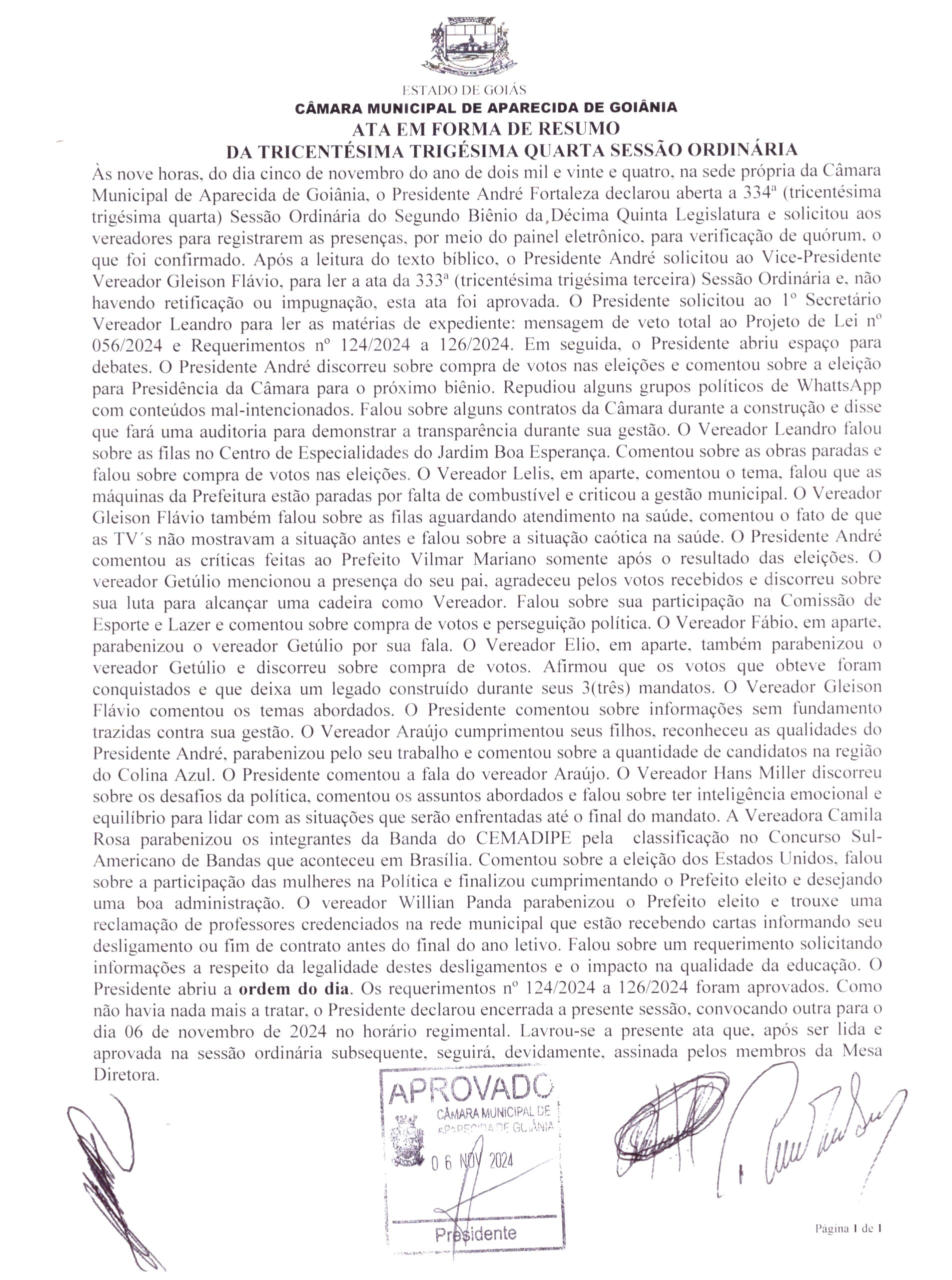 Ata da Trecentésima Trigésima Quinta Sessão Ordinária