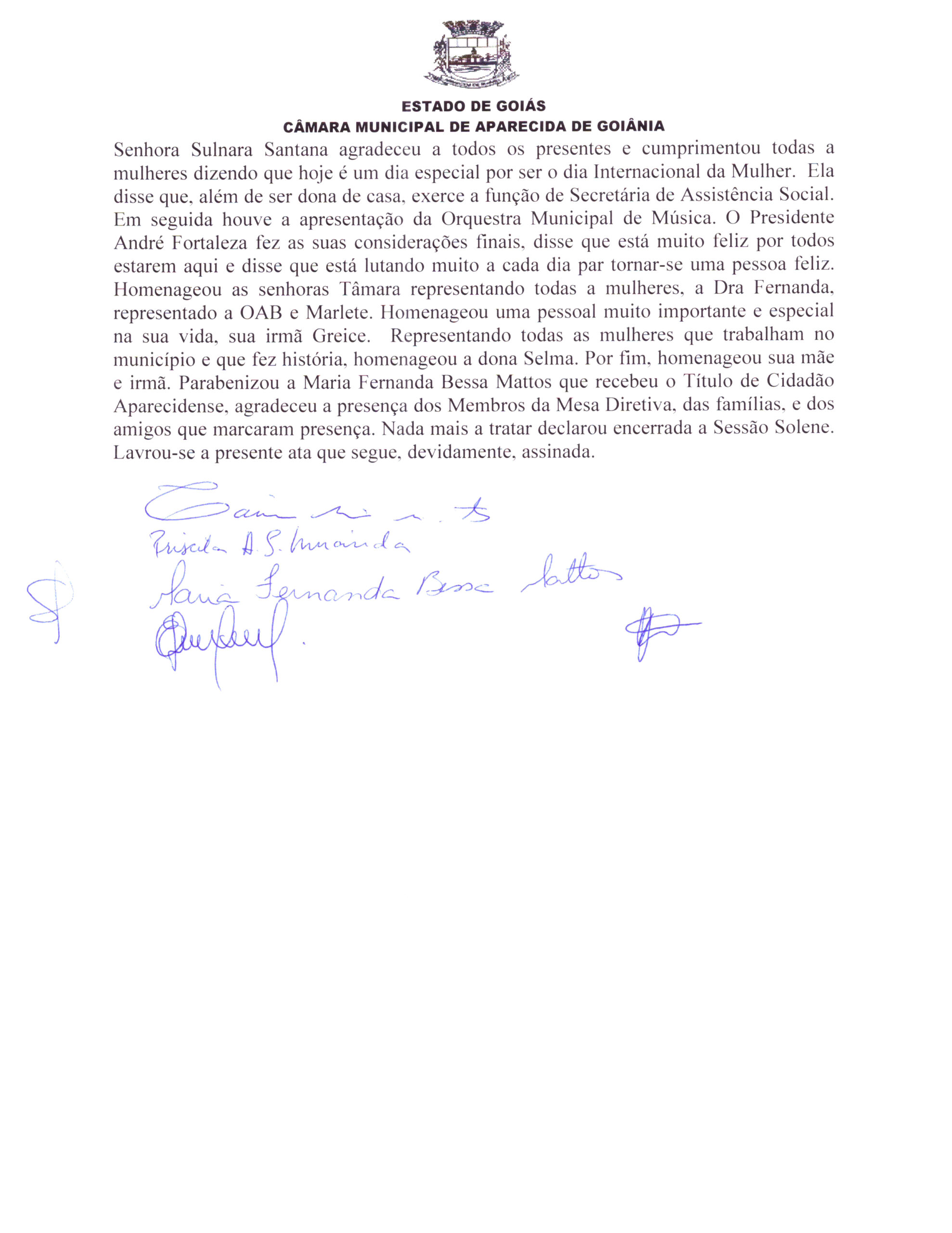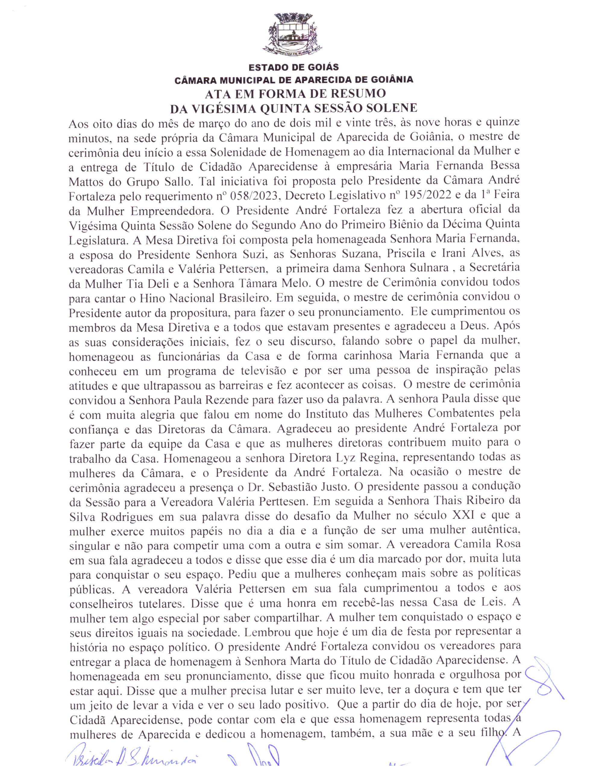 Ata da Vigésima Quinta Sessão Solene