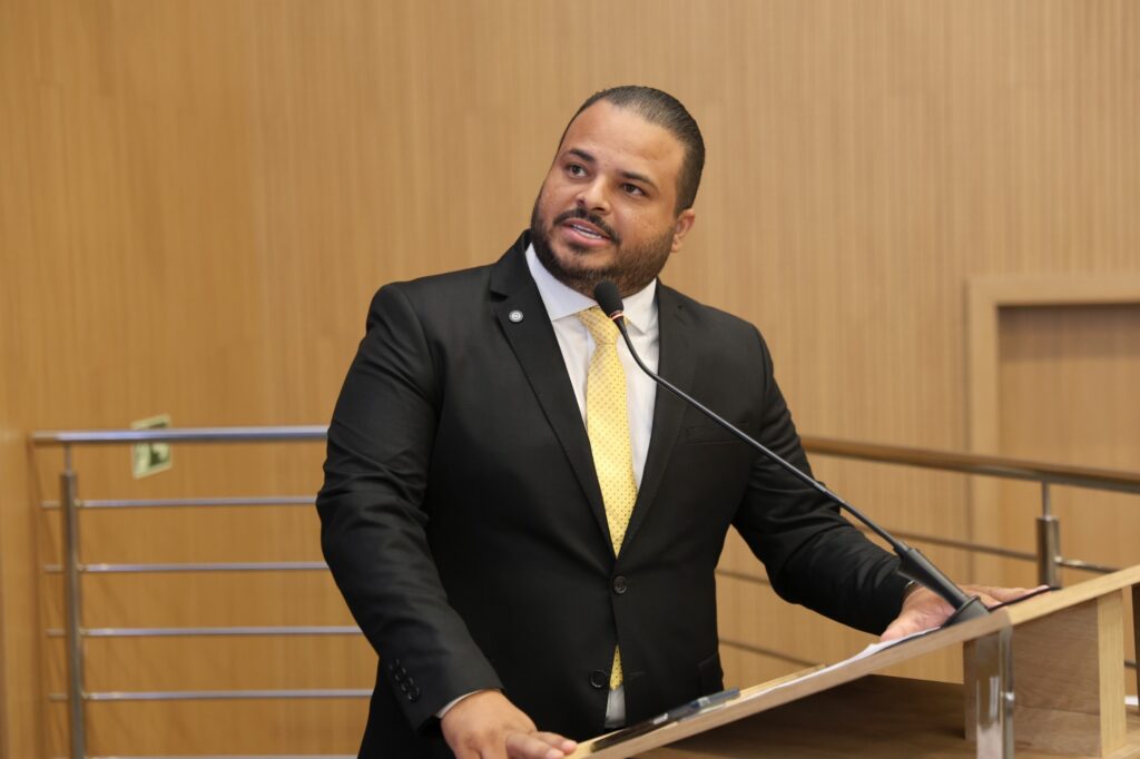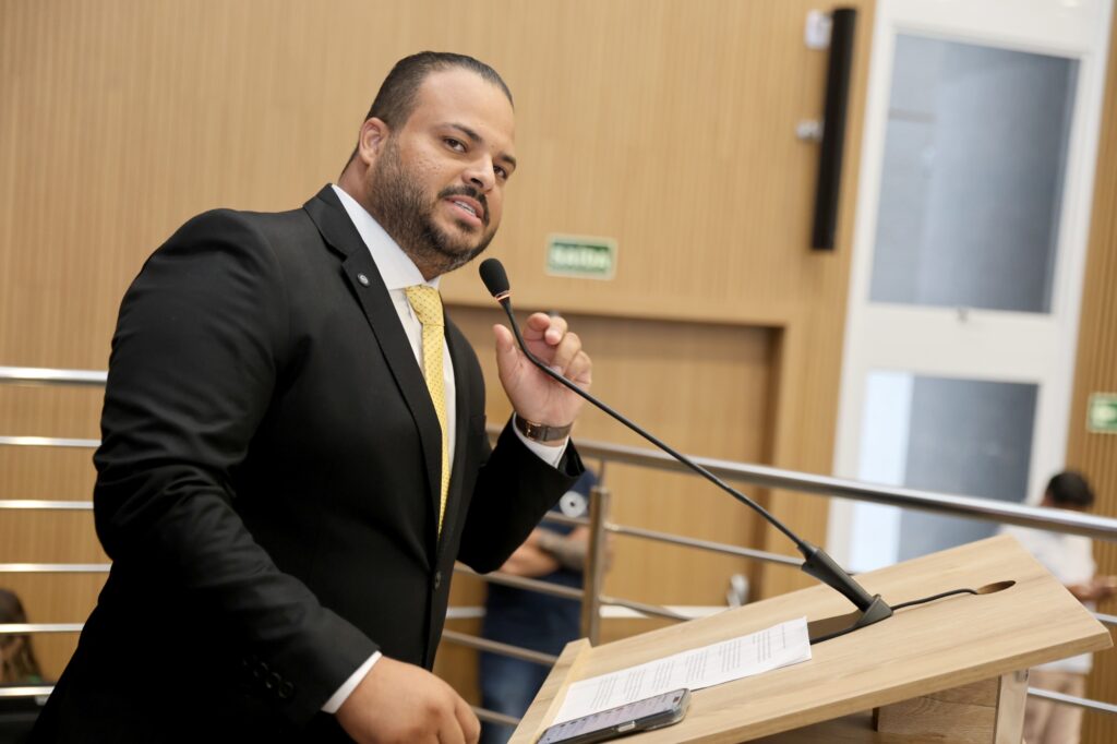 Câmara Municipal de Aparecida de Goiânia, 24/03/2025. Fazendo uso da tribuna da Câmara Municipal, o vereador Dieyme Vasconcelos saiu em defesa dos pequenos empresários de Aparecida de Goiânia, que, segundo ele, são responsáveis por cerca de 70% dos empregos gerados na cidade.