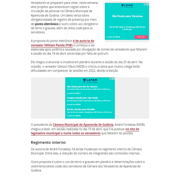 Vereadores votam ponto eletrônico e uso obrigatório de terno e gravata na Câmara de Aparecida